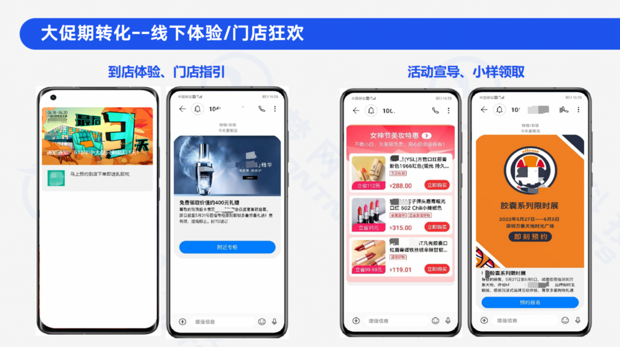 伴随618的启动,火热氛围已烘托到位,更多的生意增量等待商家去挖掘。在这个上半年最重要的电商营销节点,期待商家可以成功提振消费生意,实现生意、人群、爆品的全面提升!凯发k8官网5G富媒体消息以智慧化、个性化、强交互、强触达能力激发用户交易心智,缩短用户下单转化的交易链路,完成用户交易服务的闭环。欢迎各大品牌商家与我们联系。