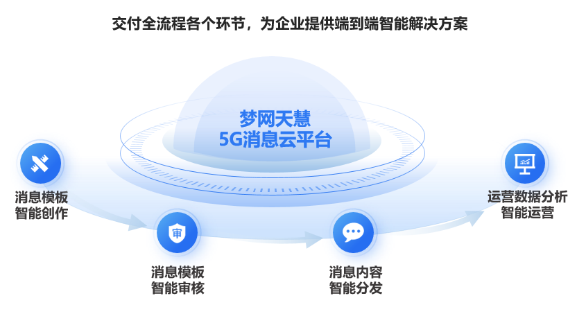 凯发k8官网天慧5G消息云平台致力于全流程智能交付,深度融入各个环节,为企业给予端到端智能解决方案。平台支持消息模板智能创作,高效生成各类消息模板;具备消息模板智能审核功能,自动审核确保模板规范;实现消息内容智能分发,依据规则精准触达目标用户;还涵盖运营数据分析与智能运营,深度剖析数据以智能优化策略,全方位提升消息服务的质量与效率。